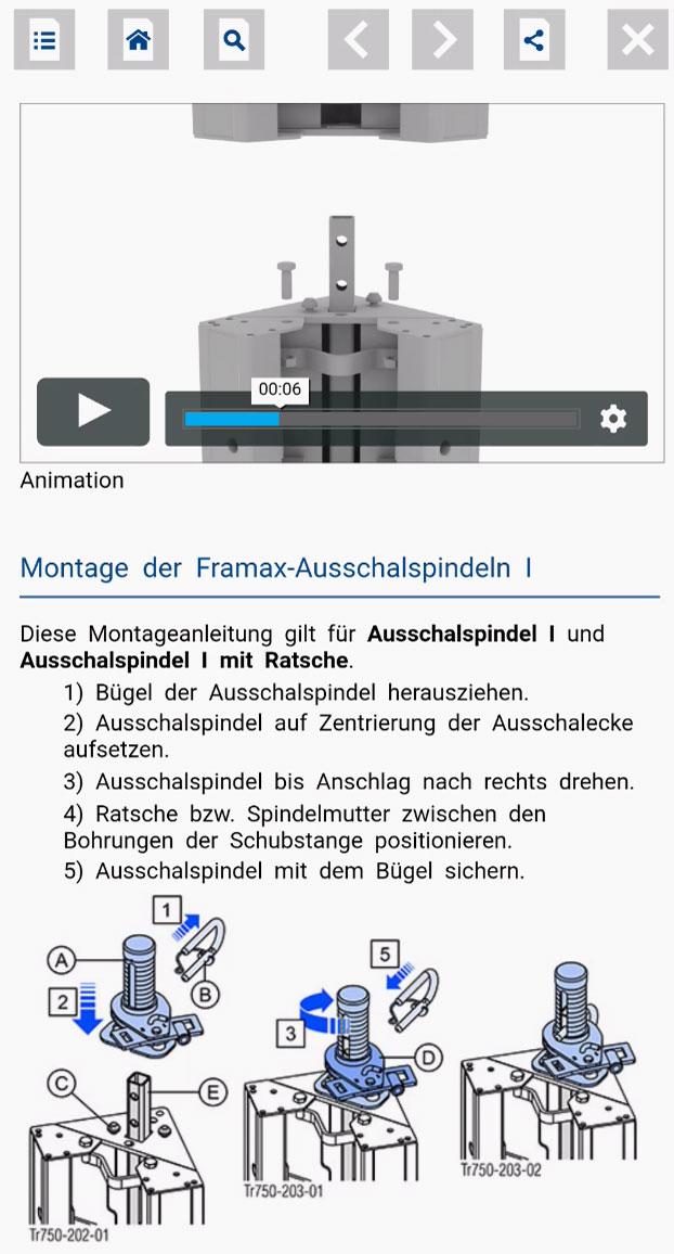 Verwenden Sie das Inhaltsverzeichnis, um durch das Dokument zu navigieren. Sie können außerdem die Suchfunktion verwenden oder auch einfach durch die verschiedenen Dokument-Seiten blättern. Des Weiteren bietet die Share-Funktion die Möglichkeit angezeigte Inhalte mit anderen zu teilen (siehe Abb. 3).