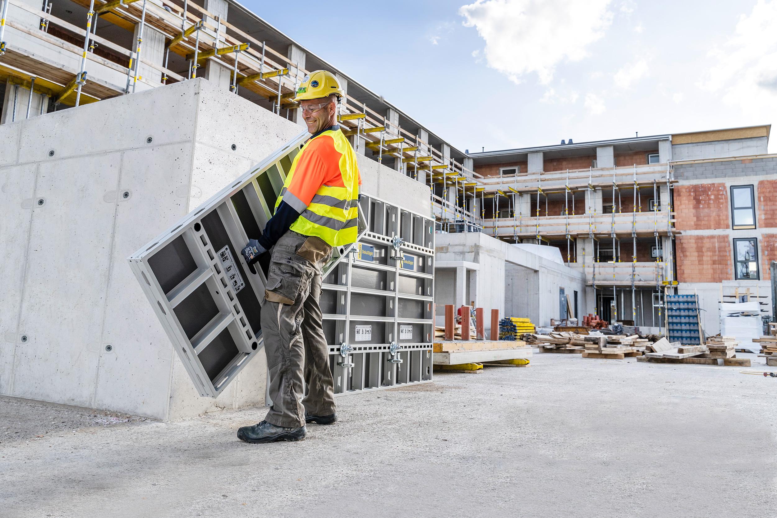 Ob Neubau oder Bauen im Bestand - die robuste DokaXlight ist mit ihrem Gewicht von 22,6 kg