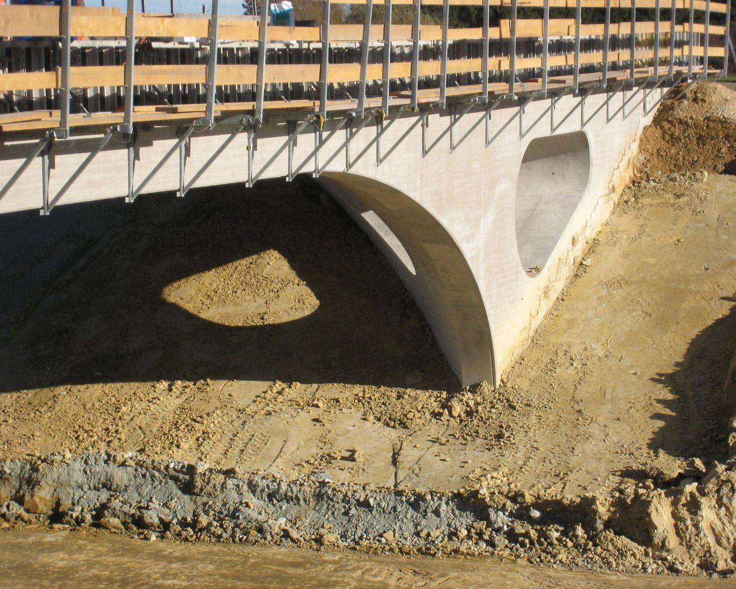 In Oberpullendorf wird die B61a als Verlängerung der S31 gebaut. Auf der ca. 10 km langen neuen Trasse sind 3 Überfahrtsbrücken mit ähnlicher Architektur zu errichten. Die ausführende Baufirma, Strabag AG, vertraut dabei auf die enge Zusammenarbeit mit den Schalungs-Spezialisten der Doka Österreich GmbH. Diese erstellte die Pläne für die komplexe trogförmige Tragstruktur in 3D und setzte als Schalung vormontierte Aussparungskästen, Großflächen-Rundschalung, Traggerüst Staxo und Abstützböcke Universal F ein.