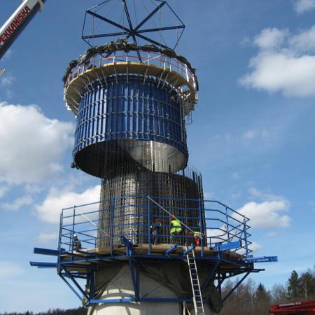 Durch den Einsatz der "Doka-Windkraftradschalung" konnte die Baufirma Skanska die Taktzeit auf einen Tag verkürzen und somit den geplanten Zeitplan unterschreiten.