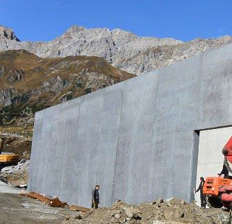In St. Christoph entsteht im Bereich des Tagesparkplatzes östlich der Heinrich-Findelkind-Galerie eine Biomasseanlage. Das Heizwerk mit modernster Rauchgasreinigung soll rund 92 Prozent des Wärmebedarfs in St. Christoph decken. Der Bau wird eine Grundfläche von 65 Meter Länge und 15 Meter Breite beanspruchen, die Fläche besteht aus einem Heizhausund einem Hackgutlager. Die Herstellung der 10,50m hohen Ortbetonaußenwände erfolgte in Sichtbeton. Für die hervorragende Qualität der Sichtbetonflächen ist die neue Xface Platte eingesetzt worden. Selbst nach mehreren Einsätzen liefert diese Schalungsplatte immer noch großartige Betonergebnisse.