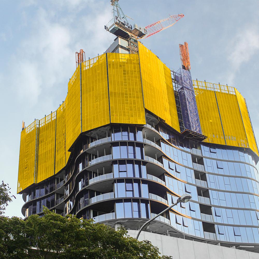 Hutchinson Builders was awarded this prestigious project to build a new 34-story luxury highrise apartment building for ARIA Property Group in the upscale area of South Brisbane. The Concrete / Formwork package was awarded to Superform (QLD) Pty Ltd who chose Doka Formwork Australia Pty Ltd for the safety of its workers. Doka's Protection Screen Xclimb 60 was chosen for this project. With a zero gap policy, landing platforms and two stair towers incorporated into the screen design, we were able to provide the customer with the ideal solution and the highest level of safety in the industry. This has allowed Superform and subsequent trades the ability to meet the aggressive schedule set on this project.