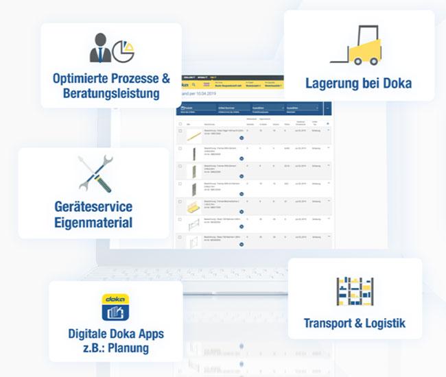 Mit diesem Gesamtpaket bietet Doka die erste digitale Lösung zur Verwaltung von Doka-Mietmaterial und Eigenmaterial auf einer einzigen Plattform.