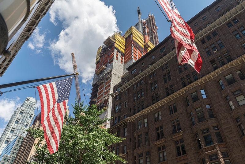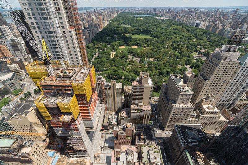 In New York City entsteht mit 472 Metern gerade das höchste Wohngebäude der Welt. Für die spezielle Konstruktionsweise stellen die Selbstkletterplattformen von Doka die passende weil schnelle und sichere Lösung dar. Das Gebäude soll 2020 fertig sein.
