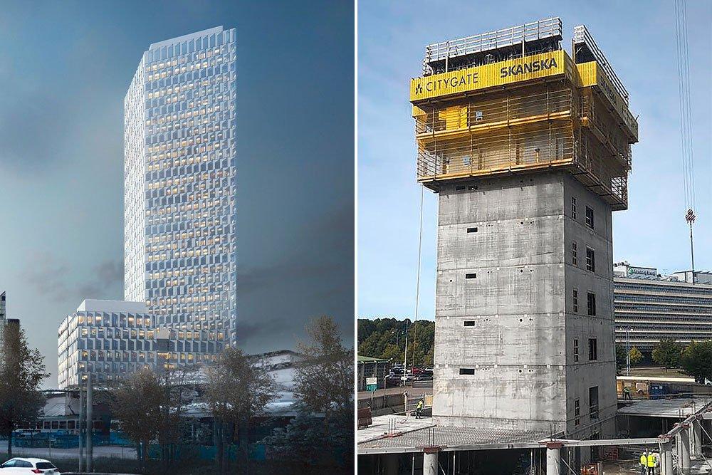 Im Stadtteil Gårda in Göteborg entsteht mit Citygate eines der höchsten Bürogebäude im nordeuropäischen Raum. Das 144 m hohe Gebäude wird aus ca. 42.000 Quadratmetern Bürofläche bestehen, die sich auf 36 Stockwerke verteilen. Für Doka ist dieses Projekt in mehrfacher Hinsicht eine Besonderheit. Nicht nur, dass BIM-Experten erstmals ein Gebäude vollständig in 3D planten, sondern es kommen mit Concremote und DokaXact gleich zwei digitale Services von Doka zum Einsatz.