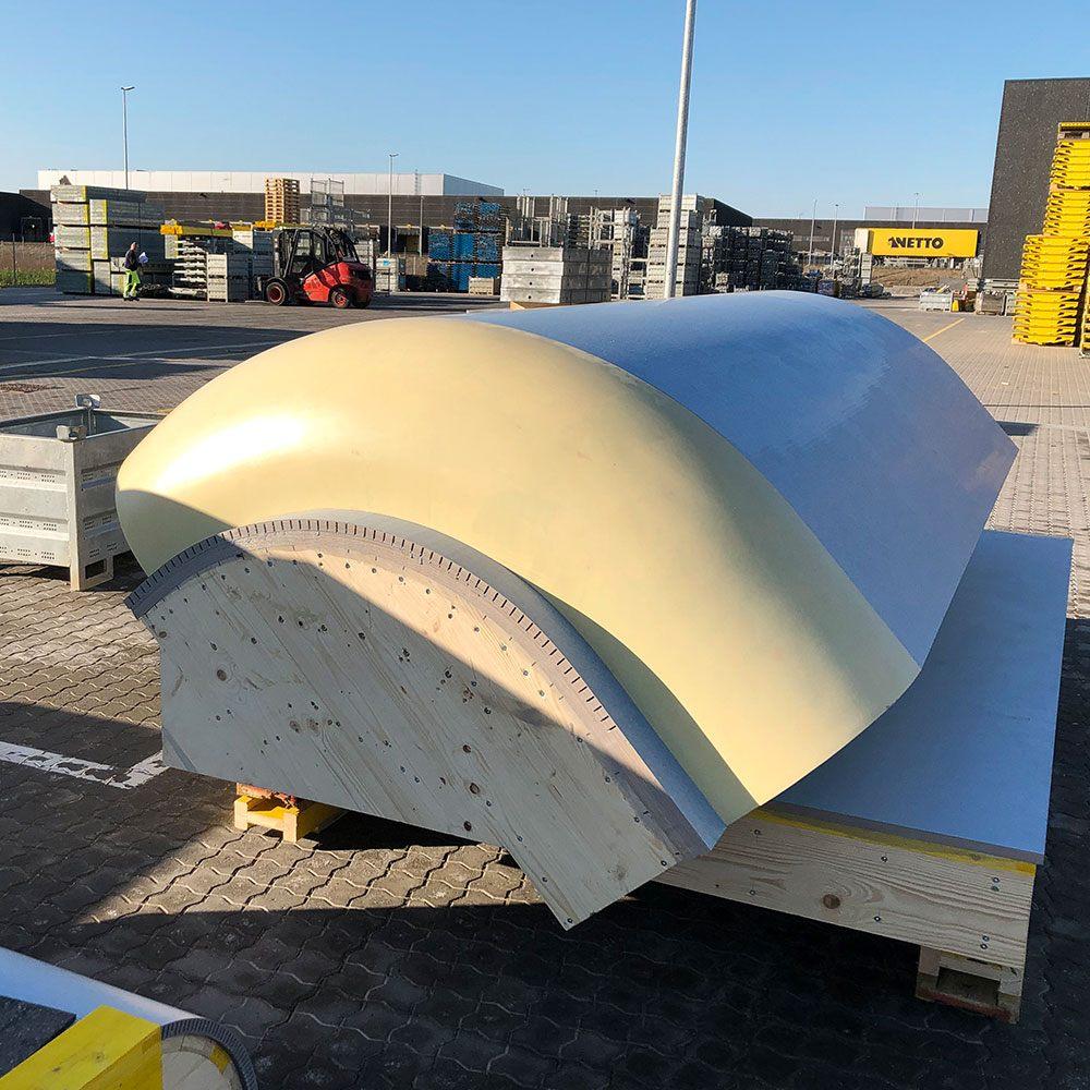 Dette projekt er ét i rækken af udfordrende projekter med høje krav til forskallingen og de færdige overflader, som bl.a. Trekroner Kirke og Sydhavns Genbrugscenter, og hvor vi i forlængelse af Næsseskoven netop er startet på en hangar- og terminalbygning i Billund med lignende skrappe overfladekrav og igen Ready to Use forme fra Østrig.