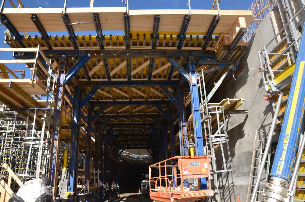 I 2011 startede byggearbejdet til projektet Nordhavnsvej i Københavns centrum. Ved den anden udbygningsfase i slutningen af 2015 fik Doka tildelt ordren over fremstilling af tunnellen i åben, opdelt konstruktion. Til væggene blev der anvendt systemerne Framax Xlife, støttebukke Universal og platformssystemet Xsafe plus, til loftsområdet understøtningsstillads SL-1 og Staxo. For at minimere risikoen og sikre en gnidningsløs byggeproces var der en Doka byggeleder til stede. De værdifulde erfaringer fra tidligere projekter (TP10 og TP30) og supporten fra hovedkontoret gav et gnidningsløst byggeforløb.