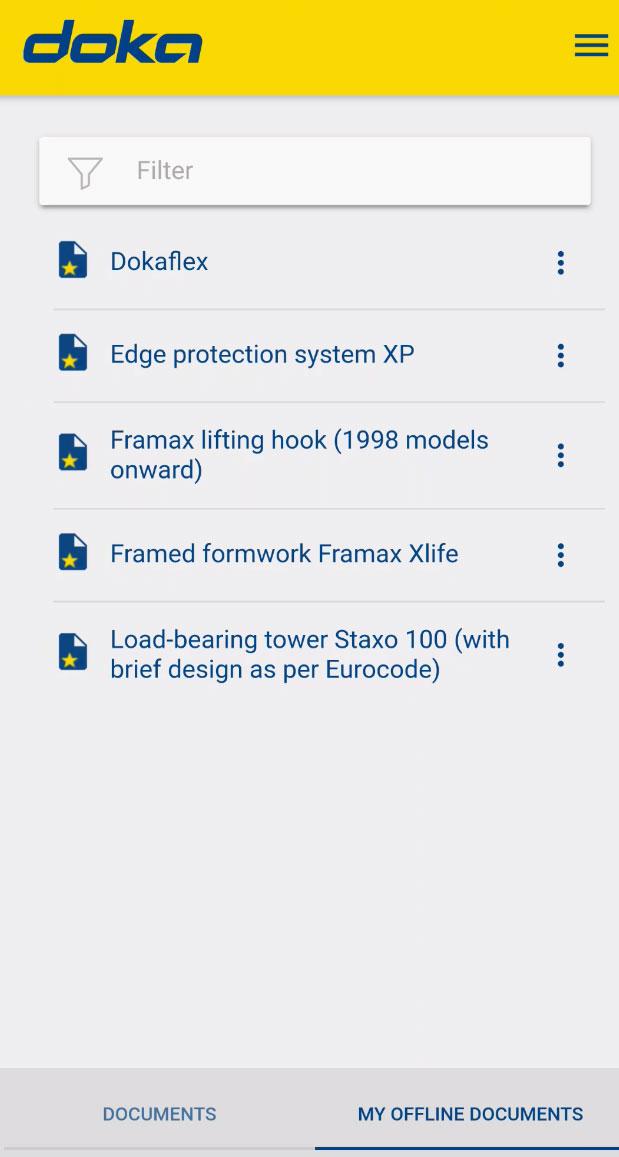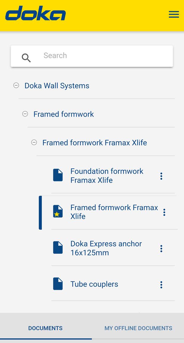 Navigate through the formwork systems to find the document you need (see fig. 1). You can view the document or also download it ( ⁞ ) so that you have it at hand, if there is no LAN or WLAN.