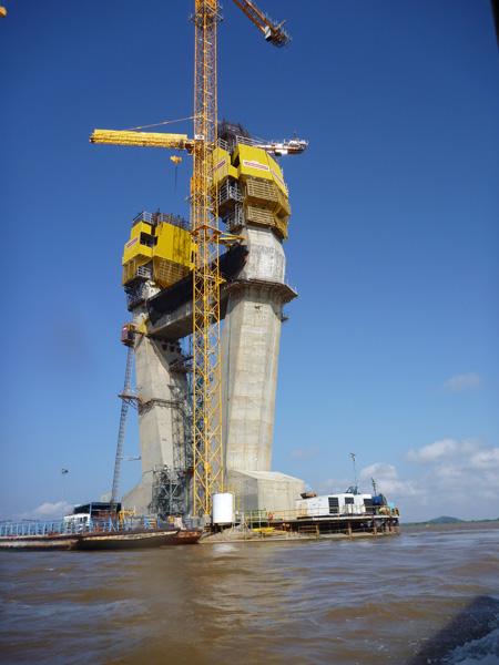 The Venezuelan government is investing in this showcase project at Caicara del Orinoco. The bridge will have an overall length of 11.125 km on completion, which is scheduled for 2015. The main bridge is 2.28 km long, and the roadway is 55 m above the water-level of the Orinoco. The two identical diamond-shaped pylons of the 360 m main span will be the centrepiece of this high-capacity road and rail link. The formwork solution for both the North and South Pylon comes from Doka. As a leading international supplier of formwork technology, Doka is represented in Latin America by subsidiaries in Brazil, Chile, Mexico, Panama and Peru.