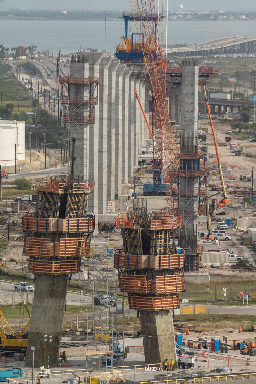 Traffic in the USA has increased by 38.4% in the last 25 years, and along with it the importance of measures to create and maintain safe, efficient transport links. The city of Corpus Christi in Texas is rising to this challenge with the new US 181 Harbor Bridge, which will have a considerably higher capacity than the structure it is replacing. Doka’s formwork expertise was called in to help build the 164 metre high pylons and over 100 piers.