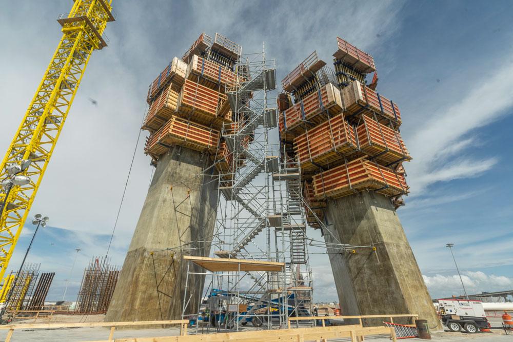 Once completed, the Harbor Bridge, including connecting roadways, will be 10.36 km long, making it the longest cable-stayed bridge in the USA and the third longest bridge of its kind in the world. It has a whopping span of 506 metres, i.e. the length of about five and a half football fields. Doka was chosen for the formwork engineering due to its delivery reliability and coordinated, integrated solution covering all phases of the infrastructure project.
