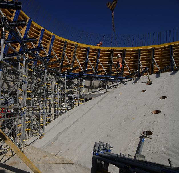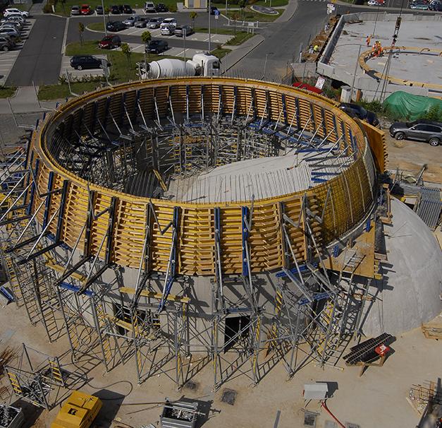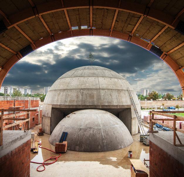 The construction project entailed planning and implementation of two concrete domes measuring seventeen and nine metres in diameter that were wedged together. It also called for construction of walls, supporting columns and a bridge to connect the new centre and the existing building.