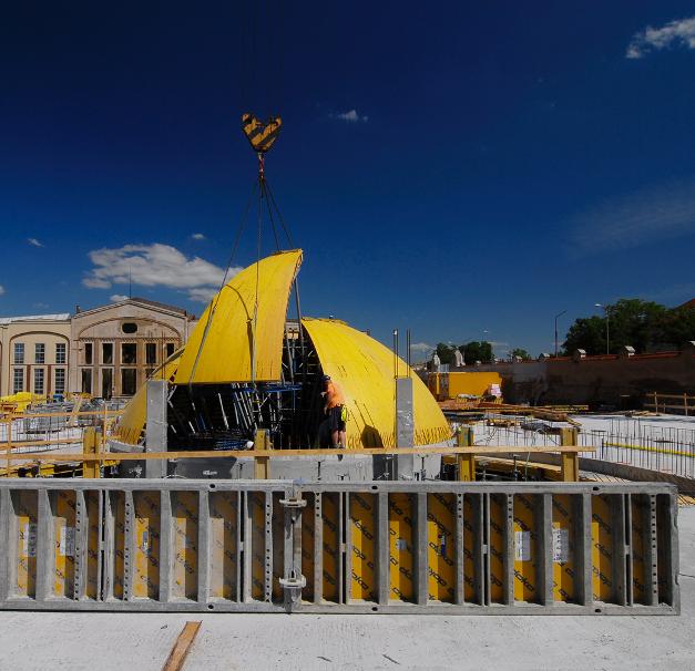 Building the educational centre and planetarium at the centre of Pilsen presented a huge challenge: it required designing and producing formwork for two domes measuring seventeen and nine metres in diameter. Additional solutions for constructing the building and the connecting bridge were needed as well.