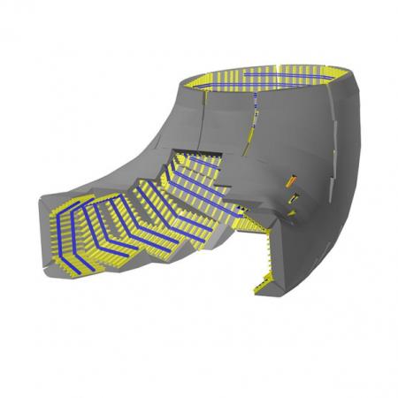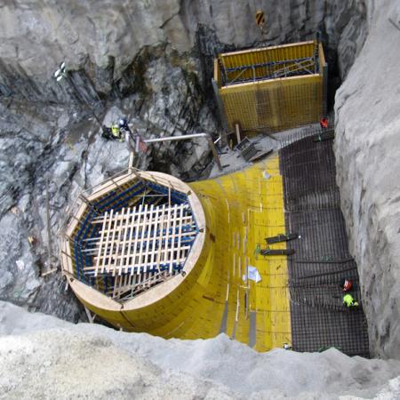 A run-of-river hydroelectric power station at Embretsfoss in southeastern Norway was renovated to secure long-term electricity supplies. Among the components constructed with Doka were the intake structure and parts of the massive concrete dam. thehe intake structure is elliptically shaped and tapers from 17 m to approx. 4.50 m.