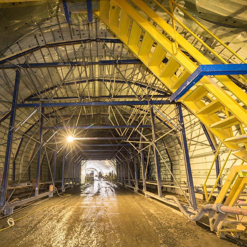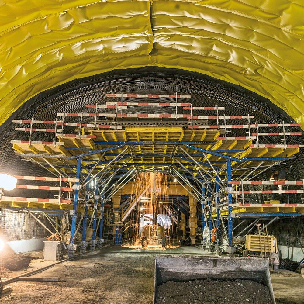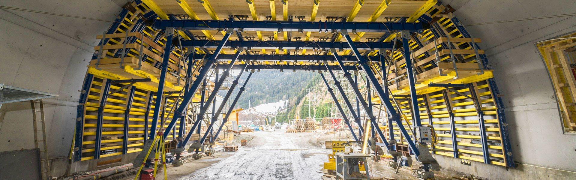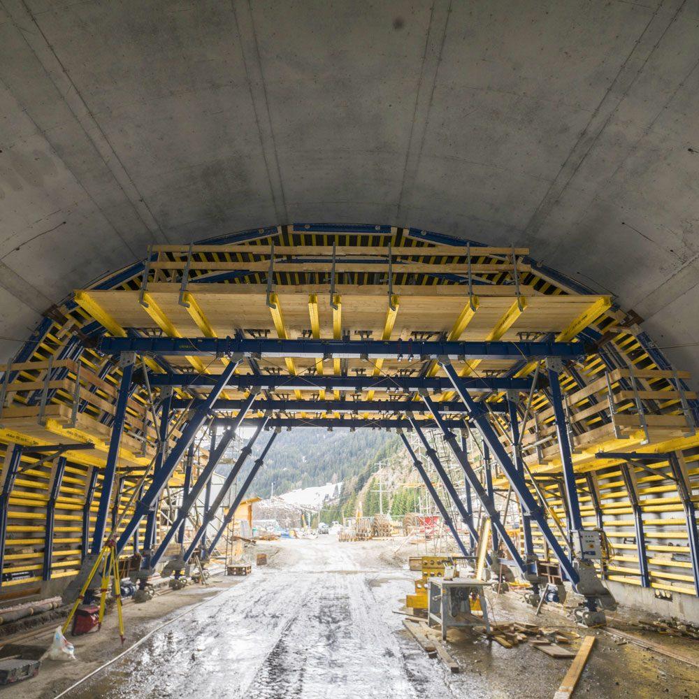 Winter, 1000 metres above sea level, 3 % longitudinal gradient, partly round and partly angular in section. The widening of the Stalvedro Tunnel in the Swiss Alps is a challenge. So on this build, (virtually) the entire range of Doka tunnel formwork systems ensures speedy, economical and safe progress.