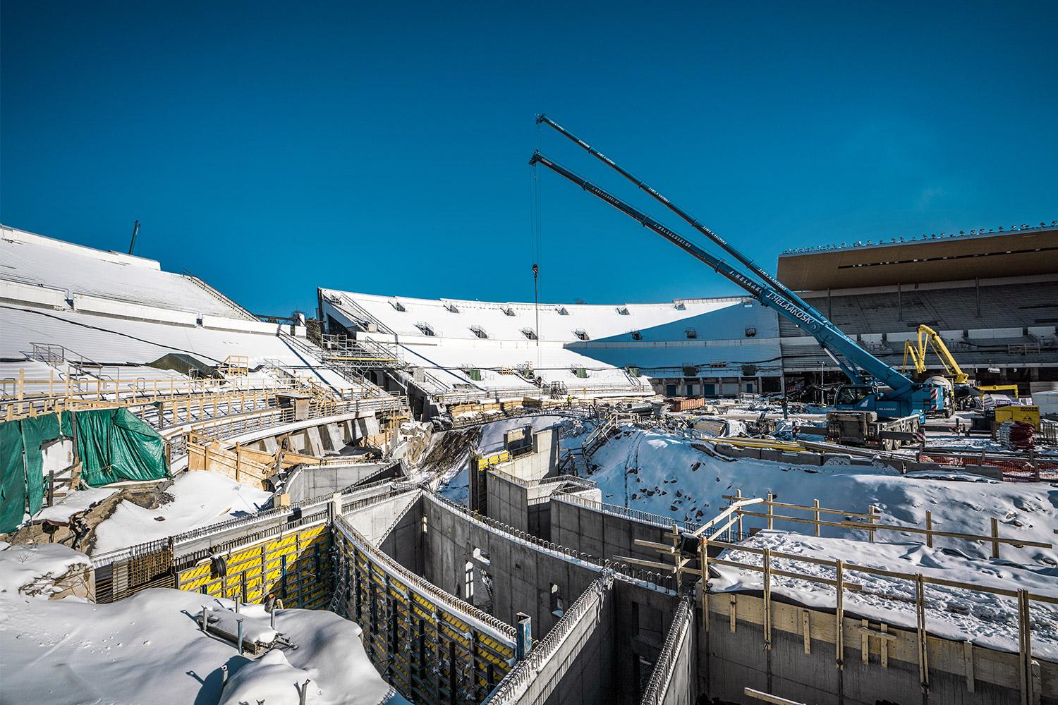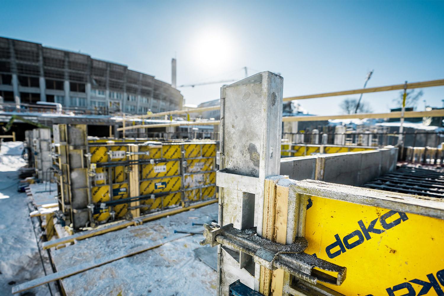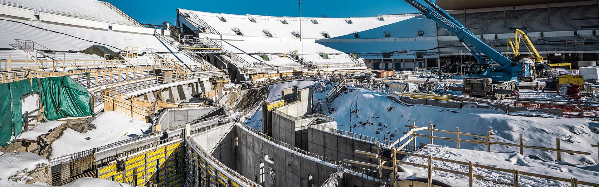 Renewal of the stadium has also been an enormous task for Doka Finland. Massive castings has been conducted on the basement floors, so the Doka formwork has been used in places that are not that evident. It should also be emphasised that a building like the Stadium is not just any kind of highrise building, rather a unique entirety, so a great deal of effort has also been put into designing. For the very first time in the history of Doka Finland, our own designers were working at the stadium construction site on a daily basis during the initial stages of the project. This facilitated the flexible travel of information between Skanska and Doka.