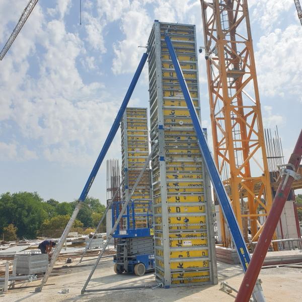 For this project, the following Doka systems where used: for the 17 meters high columns Framax Xlife formwork system; for the foundation the Frami Xlife system and to make the inclined columns, the TOP 50 system.