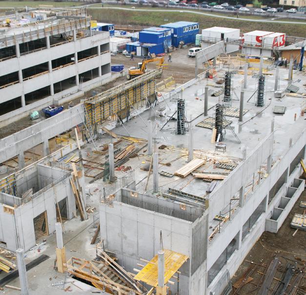 To build the 'surgical-medical centre' (CMZ) at Klagenfurt hospital, the JV of Porr and Strabag turned to highly efficient formwork technology from Doka and profited from optimised forming workflows. The innovative Table Lifting System (TLS), for 'jumping' tableforms to the next floor independently of the crane, gave a big boost to the speed of the forming operations.