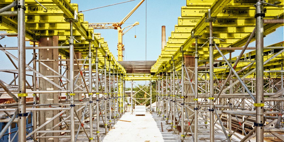 Doka-tukitornin Aluxo alumiinikehä. Aluxo-kehän korottamiseen tarvittavat liitososat on integroitu irtoamattomasti.