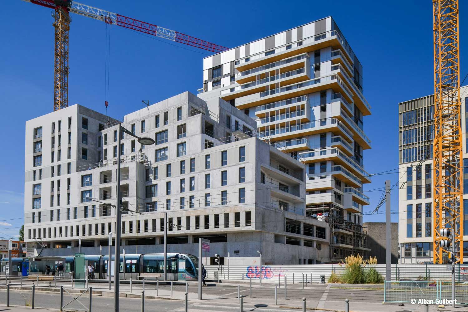 - Un immeuble résidentiel de 78 logements sur 6 000 m² de plancher, le tout sur 9 étages avec les 3 premiers dédiés à un parking de 190 places,