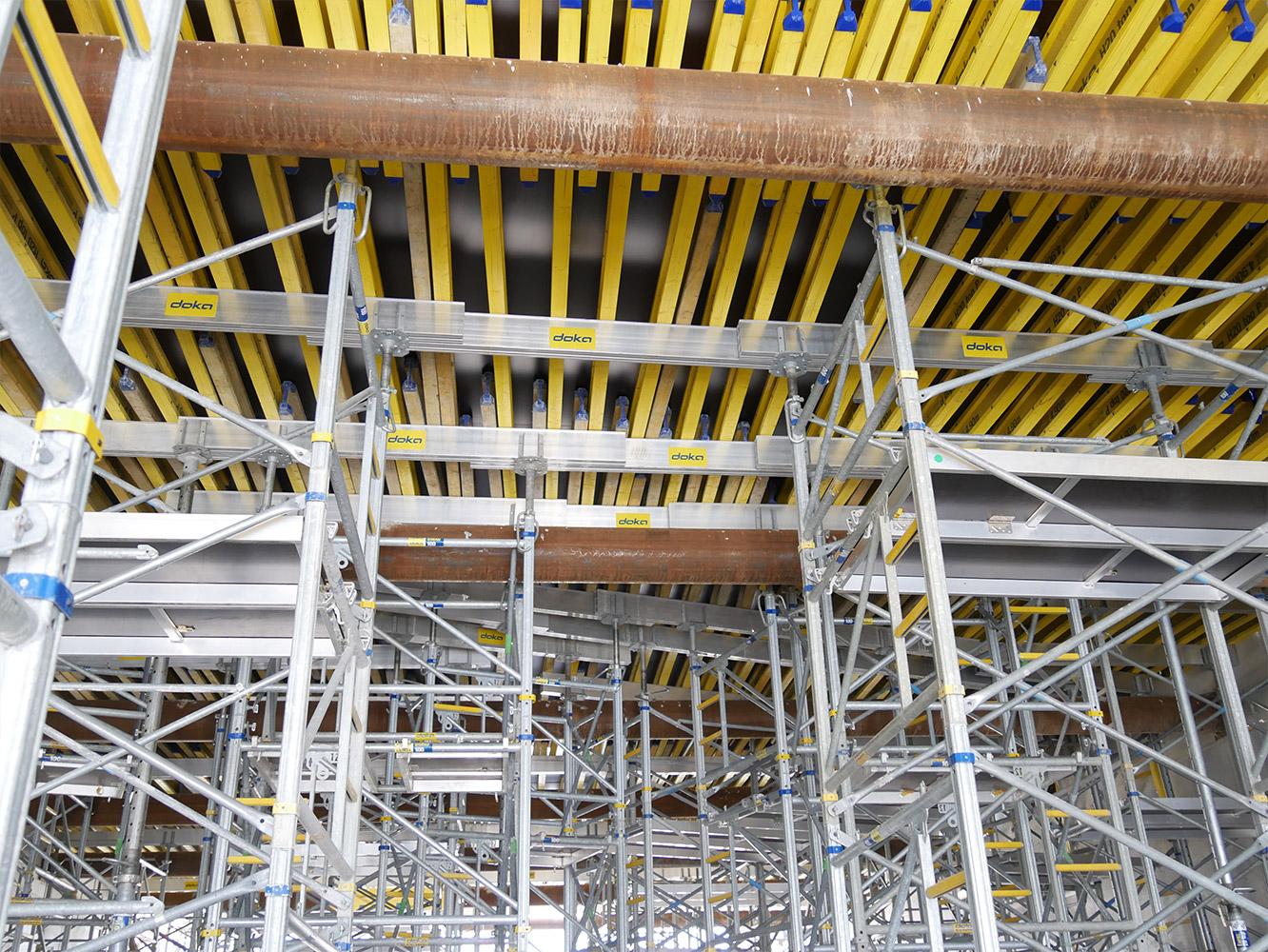 Autre particularité, avec des butons que l’on retrouve tous les 4 m, un plan de calpinage des poutrelles primaires et secondaires très précis était nécessaire afin de bien les positionner. Sur les conseils du Bureau d’Études Doka Paris, les poutrelles primaires passent entre les butons et sont au même alignement, alors que les secondaires passent par-dessus. « Depuis les 6 dernières années, je travaille avec Doka principalement sur des offres d’étaiement. Le Bureau d’Études Doka m’accompagne toujours avec des offres techniquement très poussées, et ce dès l’appel d’offre. Ce qui permet de se projeter plus facilement sur la finalité du projet. Cet effort est appréciable car c’est rassurant et surtout très concret. La confiance est ainsi établie. De plus, nous demandons régulièrement d’avoir un partenaire pour du montage et Doka nous a toujours trouvé des prestataires de qualité, telle que la société ABT ici pour ce chantier, ce qui nous assure une belle productivité. »