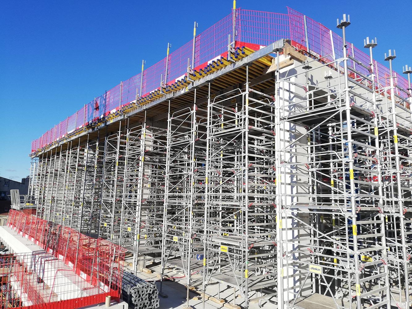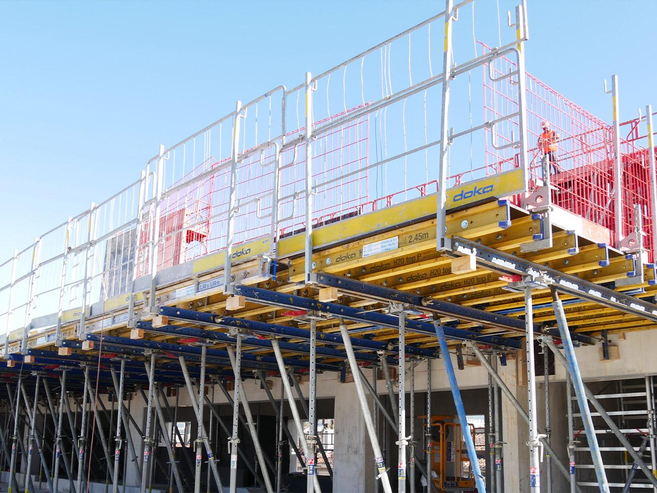 Deux solutions Doka ont été retenues pour la construction de cette école : une d’étaiement avec la Tour Excellence et une de coffrage avec la Table Dokamatic.
