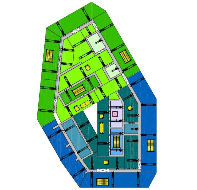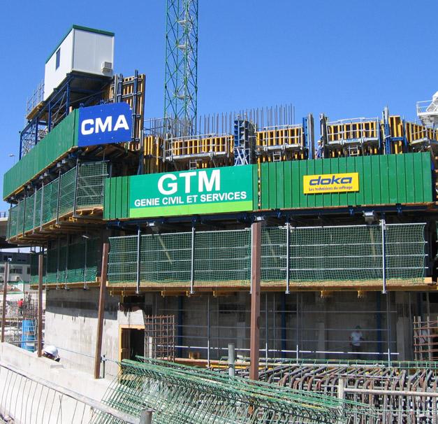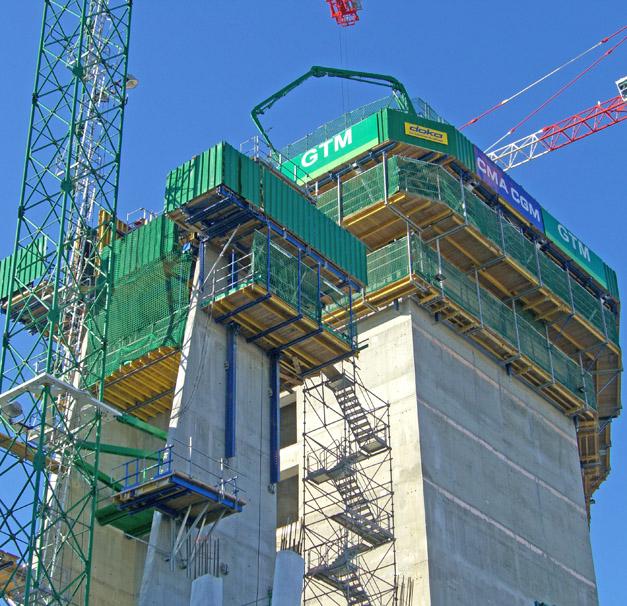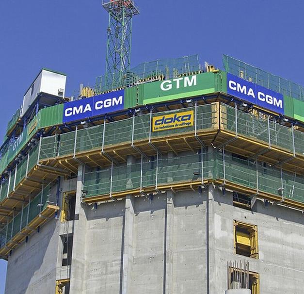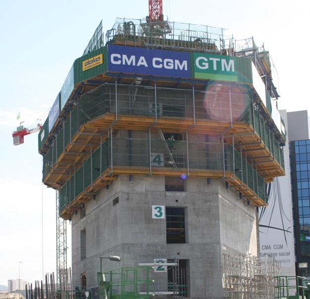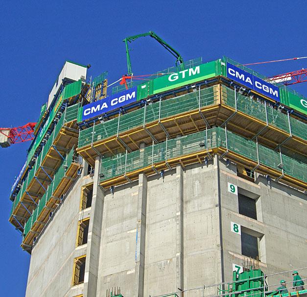 À Marseille, grâce à l'utilisation pour la première fois d'un coffrage autogrimpant, un bâtiment de bureaux de 150 mètres de hauteur a surgi. Doka a livré pour la géométrie du bâtiment spécifiée par l'architecte star Zaha Hadid, un concept de coffrage parfaitement étudié pour l'ensemble des faces du noyau tout comme pour les faces de l'ascenseur panoramique vitré.