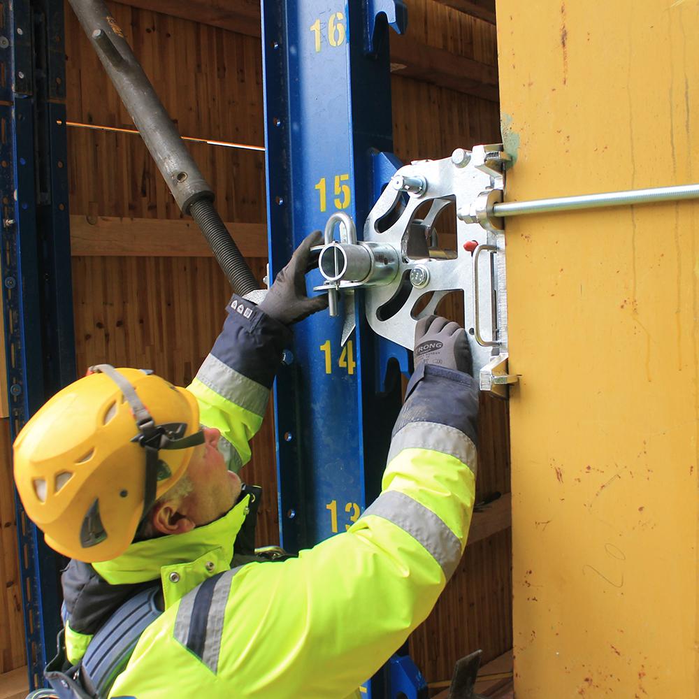 A gyarkolati zsalutechnikai támogatás mellett a Doka műszaki csapata további értékes segítséget nyújtott az előkészületi szakaszban: minden kúszási szakaszt felfelé és lefelé is megterveztek, figyelembe véve az emeletek különböző magasságát és a köztes szintek magasságtöbleteit. A Doka csapata a partnerrel szorosan együttműködve fejlesztette ki az egyedi függesztési pontokat, ahol a védőpajzsot a szerkezethez illesztették. Jellemzően, a pajzs felfüggesztési pontjait építkezés közben