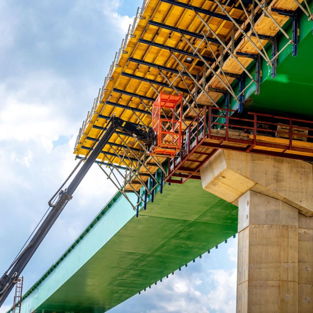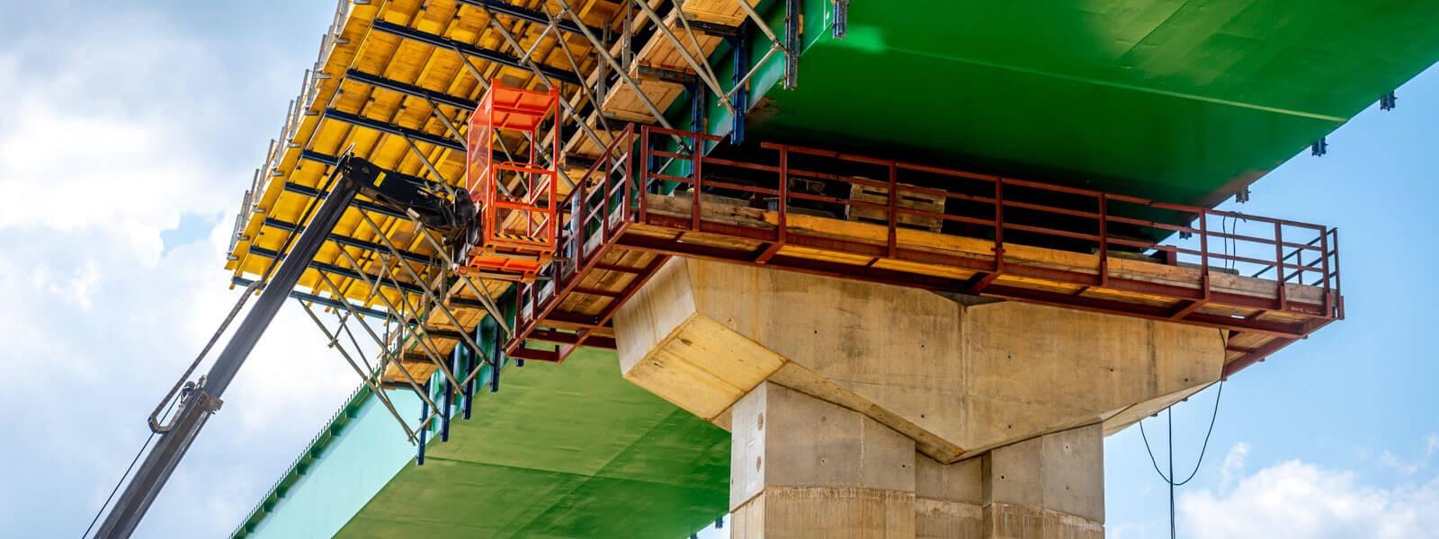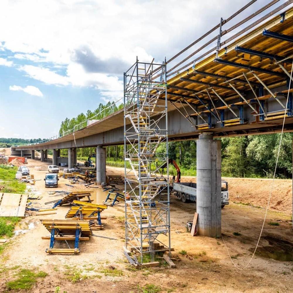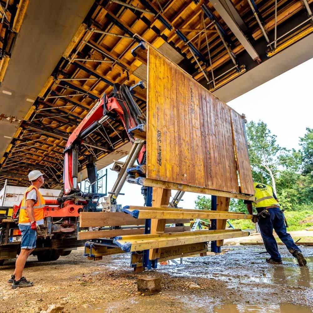 Összesen három ütemnyi zsalukészlettel dolgoznak a hídon, az egyik ütemen a zsaluzás, a másikon a vasszerelés, míg a harmadikon a betonozás készül. A piacon a Doka termékei passzoltak leginkább az elképzelésekhez műszakilag, kezelhetőség és a költségek szempontjából is. A pályalemez főtartón túlnyúló részének alátámasztására olyan konzolpárokat függesztettek az acél főtartóra, amelyek szétszerelés nélkül leszedhetők és tovább vihetők a következő ütemre.