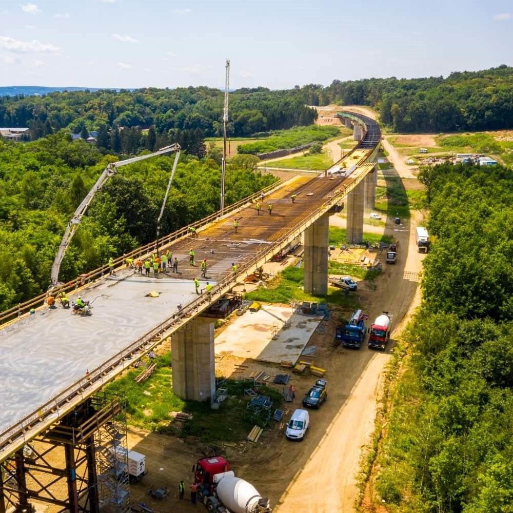 A Vasszentmihályt északról elkerülő viadukt zsaluzásának egyik nehézségét az adja, hogy igen változatos domborzati viszonyok között épül a Vörös-patak völgye felett. A pályalemez 9 ütemben épül meg.