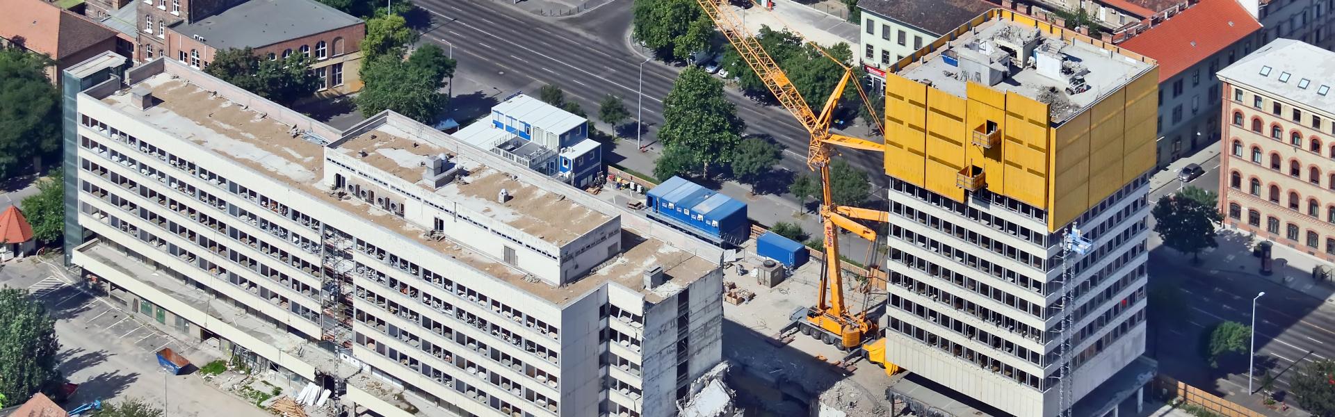 A projekt során lebontott Vízművek épülete eredetileg 1975 és ’82 között épült három részből álló irodakomplexum volt, melynek teljes alapterülete 26 ezer négyzetméter.