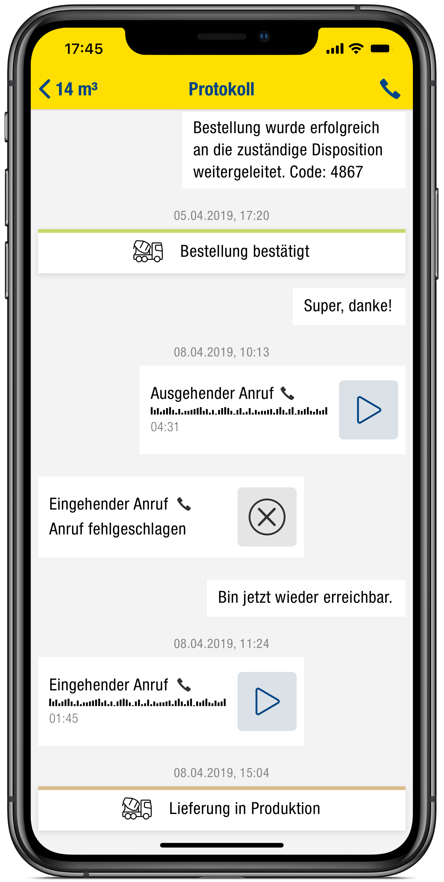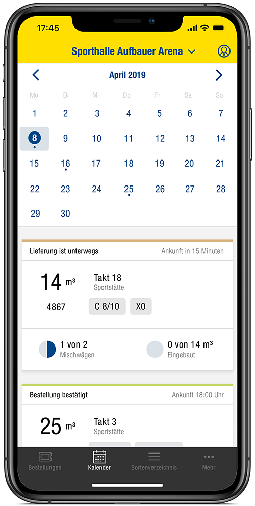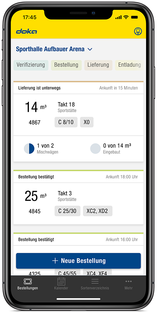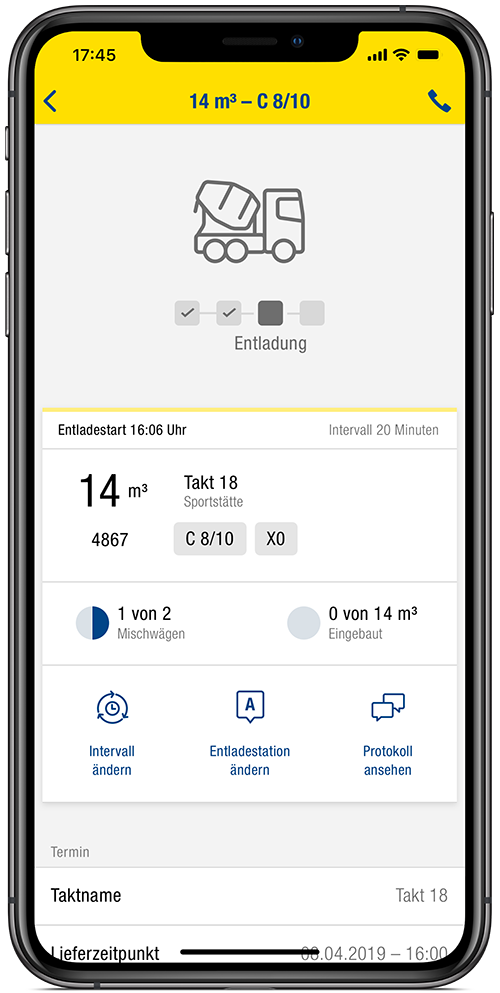 Nyomószilárdság, kitettségi osztály, szállítási idő, szállítás helye, az elhelyezés módszere; mindezek a betonrendelés kulcsfontosságú tényezői, melyeket gyakran pusztán telefonon intéznek - így csupán idő kérdése, mikor fordulnak elő hibák és félreértések. A Smart Pouring ebben a folyamatban segít. A mobilalkalmazás optimalizálja a helyben öntött beton megrendelésének és szállításának teljes menetét a kezdeti rendeléstől egészen a folyamat végéig, amikor a beton zsaluba öntése történik. Az alkalmazás hiánytalanul dokumentálja a folyamatot, és gondoskodik arról, hogy ne történjenek hibák az elem megformálásáig.