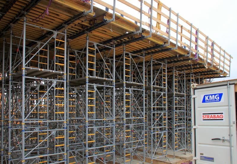 This PPP project also involves the building of 72 bridges and crossings – 11 overbridges, 30 underbridges and 31 smaller culverts. Only Doka formwork is being used for all the concreting works – e.g. 9000 m² of the extremely adaptable Large-area formwork Top 50, and more than 4750 basic frames of the heavy-duty Load-bearing tower Staxo 100 system.