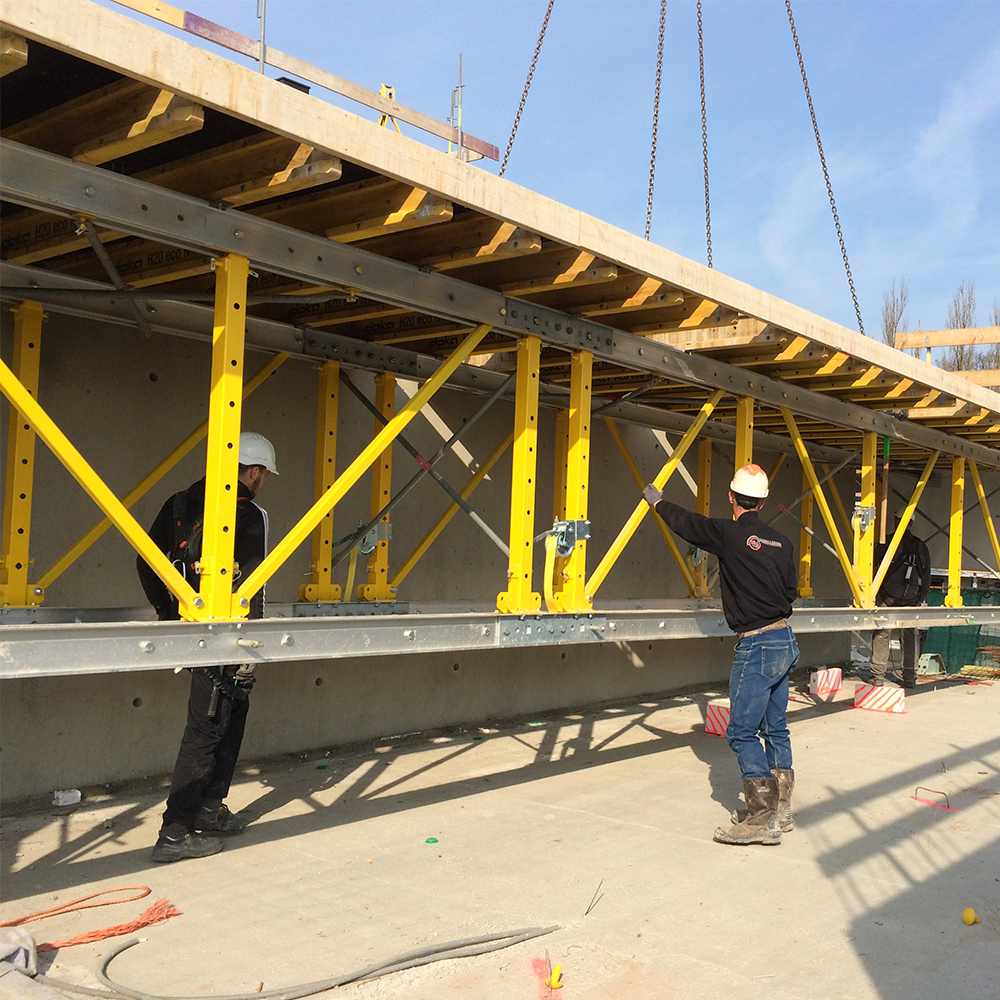 Door de grootte van de tafels konden de vloeren in het vereiste tempo gestort worden. Tafels die op dag 1 werden bekist en gestort, waren op dag 2 voldoende uitgehard om ontkist te worden en de bekisting weer klaar te maken voor de volgende fase. De grote lengte had bovendien een groot voordeel voor de stort van de balkons aan de voor zijde. De Jong: “Door het gewicht van de tafels en de lengte, was er voldoende tegengewicht om de balkons – van zo’n 3,5 ton - zonder extra ondersteuning mee te storten.”