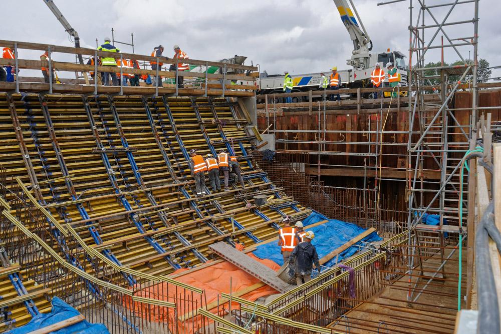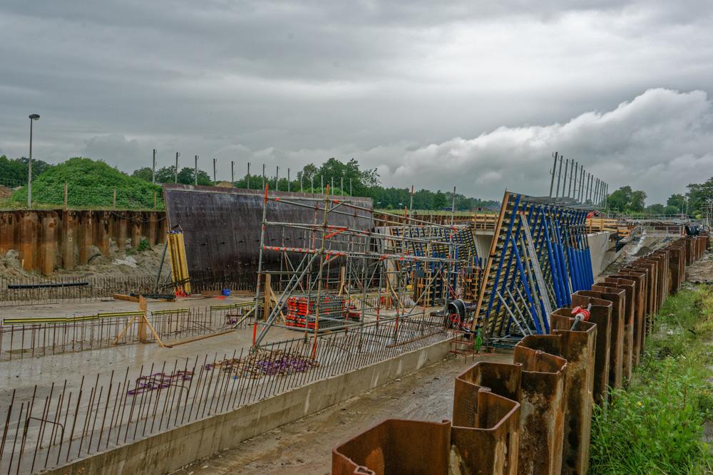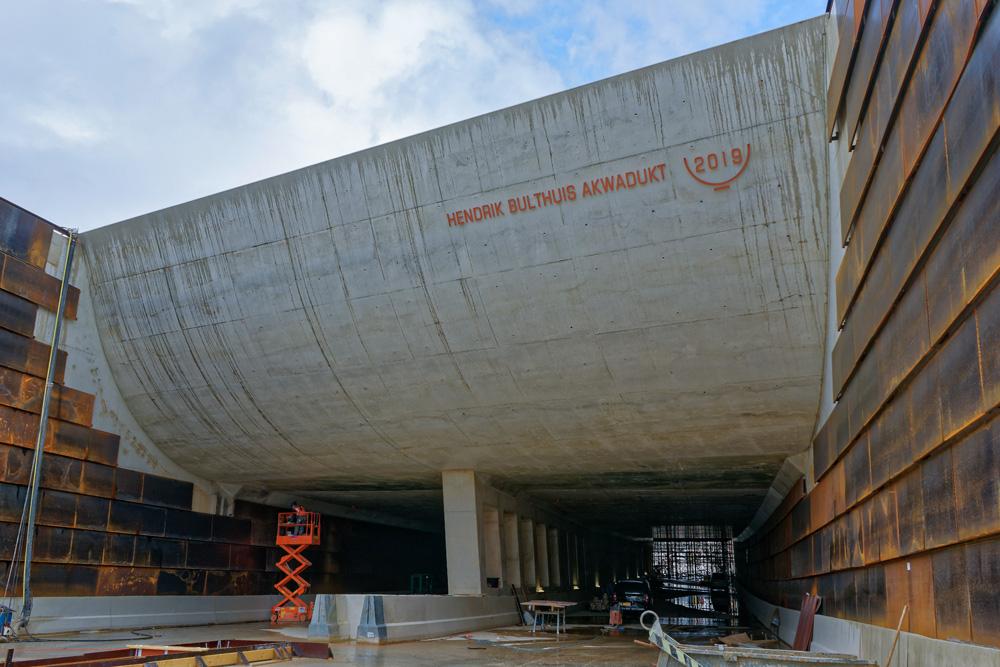 Voor het in het werk storten van de wanden en het dek van het aquaduct wordt gebruikgemaakt van een speciaal voor dit projectdeel bedachte bekistingoplossing van Doka Nederland. Met het oog op het gewenste schoonwerk van de tussenwand is er gekozen voor het Doka-Dragerbekisting top-50 systeem. De dragerbekisting Top-50 is een projectspecifiek voorgemonteerde grootwandbekistingsysteem waarbij vorm, grootte, centerpenpatroon en bekistingplaat van de panelen aan elke behoefte kunnen kan worden aangepast.