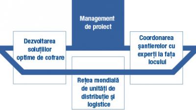 Pentru ca totul să se sincronizeze perfect, echipa de management de proiect de la Doka asistă clienţii în timpul dezvoltării proiectului, în faza de decizie, de pregătire a lucrărilor, de execuţie a construcţiei precum şi de finalizare.