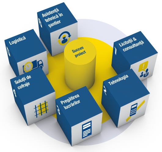 "A trece la treabă cu toate motoarele pornite" înseamnă pentru noi să fim partenerul dvs. în fiecare etapă a unui proiect de construcţie (studiu de fezabilitate, proiectare, licitaţie, execuţie,...).