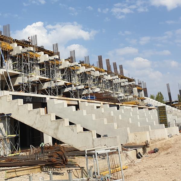 Eșafodajul Staxo 40 și-a dovedit utilitatea prin rapiditatea montajului și versatilitatea lui fiind utilizat la: susținerea elementelor prefabricate (grinzi gradene) pentru realizarea monolitizării nodurilor de cadre, precum și susținerea cofrajului pentru execuția grinzilor pentru gradene, turnate monolit în șantier.