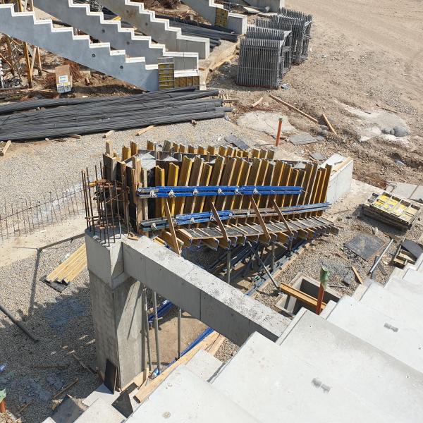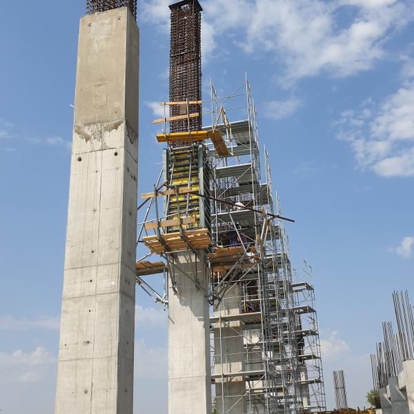 La acest proiect s-au folosit urmatoarele sisteme de cofrare Doka: pentru stâlpii cu înălțime de circa 17 metri a fost utilizat Framax Xlife datorită robusteții sale; la execuția fundației s-a folosit sistemul Frami Xlife datorită ușurinței în manevrare a panourilor; la execuția grinzilor înclinate din beton, s-a utilizat Top 50, datorită flexibilității sale.