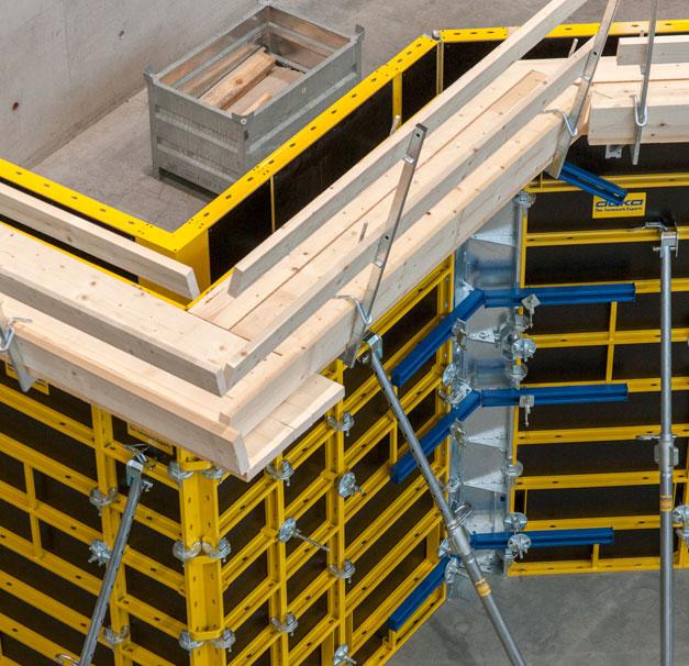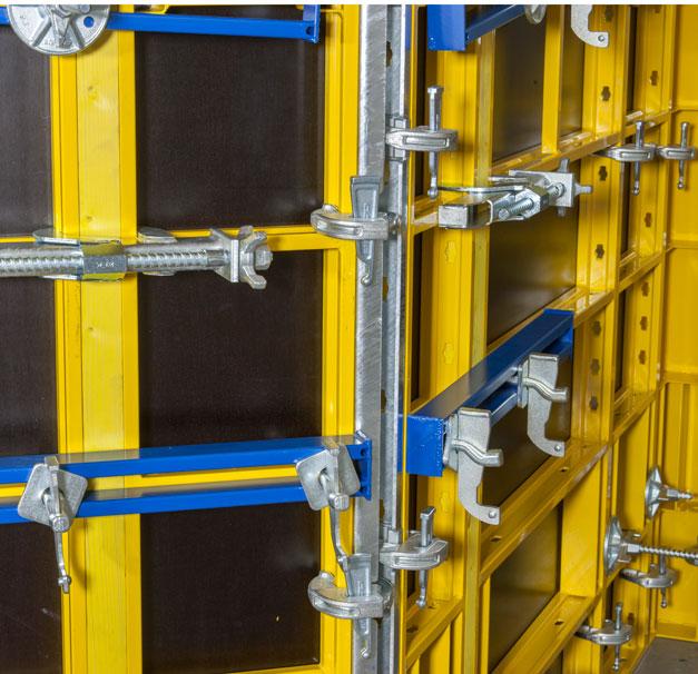 Veće jedinice elemenata se ukrućuju pomoću stega za poravnavanje ili univerzalnih pojaseva, omogućavajući njihovo brzo premeštanje uz pomoć krana. Žljeb koji se proteže duž rama omogućava fiksiranje stega na bilo kom mestu na ramu: zbog ovoga paneli mogu da se montiraju u visinu bez zazora i unapred zadatog rastera. Ovo znači da se oplata može lako prilagoditi npr. stepenicama, nagibima i neravninama.