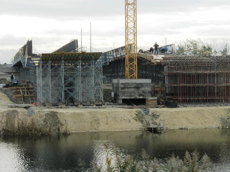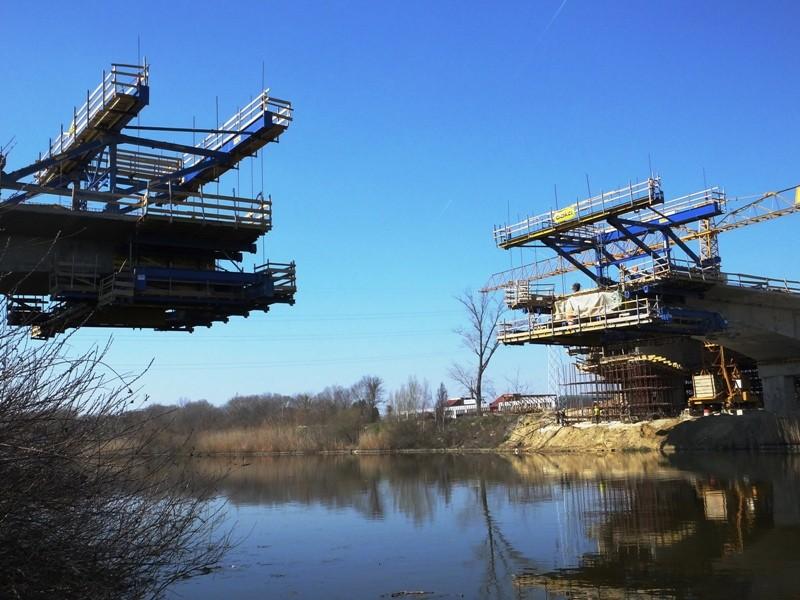 Za izgradnju betonske konstrukcije mosta dužine 176 m, sa dve odvojene trake širine od po 13,70 m, Doka je isporučila svoje već višestruko oprobane sisteme nosećih skela - Staxo 40 i Staxo 100 - koji se koriste za podupiranje bočnih raspona jedne kolovozne trake mosta dužine 48 m. Skele Staxo 40 i Staxo 100 predstavljale su pravi izbor kada je trebalo obezbediti sigurnost i stabilnost, i osloniti se na njihovu neprikosnovenu nosivost. Ovaj projekat pružio je idealnu priliku za poređenje efikasnosti dva različita koncepta sistema skela – standardnih cevastih skela, koje podupiru konstrukciju jedne trake mosta, i Doka nosećih skela Staxo 40 i Staxo 100, koje su postavljene pod drugu kolovoznu traku mosta. Još jednom se u praksi potvrdilo da se montaža Doka sistema skela vrši čak 2 – 2,5 puta brže u odnosu na postavljanje tradicionalnih cevastih skela. Ova brzina i fleksibilnost montaže postignute su zahvaljujući mogućnosti promene rastojanja među ramovima raspoloživim u tri različite visine, kao i lako podesivim pratećim elementima sistema - nosećim stopama i U-glavama.