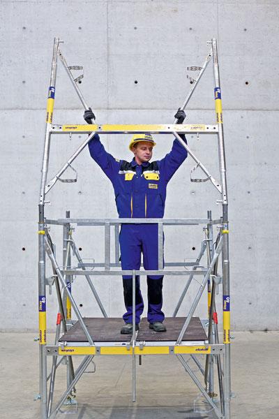 Jednostavna montaža skele: mala težina i ergonomski optimizovana geometrija Staxo 40 rama omogućava brzu montažu skele i olakšava rad.