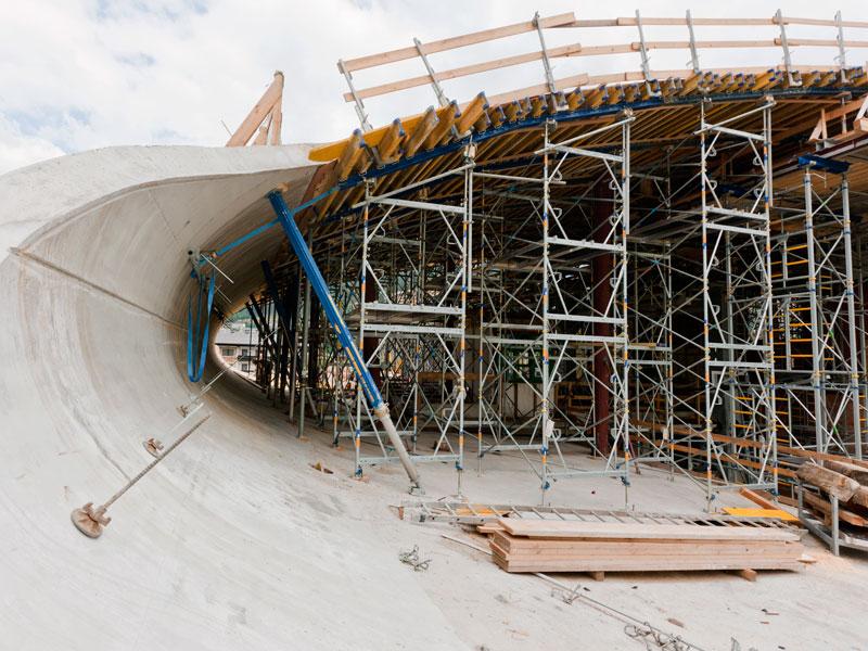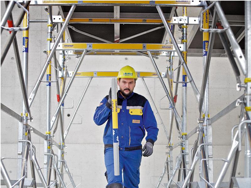 Brzo i bezbedno: radne platforme unutar i između nosećih skela, bez zazora, koje pokrivaju celu radnu zonu, omogućavaju bezbedan pristup radnom mestu i ubrzavaju radove na montaži.