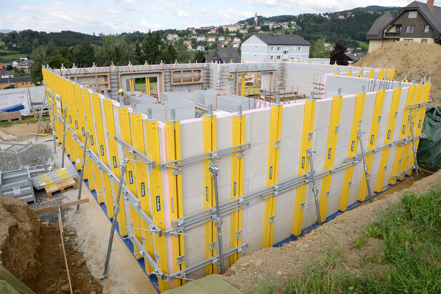 Inovativna metoda gradnje kleti DokaBase z vključeno zunanjo izolacijo je nov način gradnje betonskih sten, nepropustnih za vodo. V enem samem sistemu kombinira tri bistvene delovne korake – opaženje, polaganje izolacije in zatesnitev. Zunanji opaž je hkrati izolacija, ki ostane trajno vključena v objekt. Sveži beton deluje kot lepilo in s panelom DokaBase po celotni površini tvori trajen nepropusten spoj. Zaradi kombinacije teh dveh dejavnikov ni potrebna dodatna zatesnitev proti vlagi. DokaBase se je uspešno uporabil že na številnih gradbiščih. Več informacij najdete na www.dokabase.com.