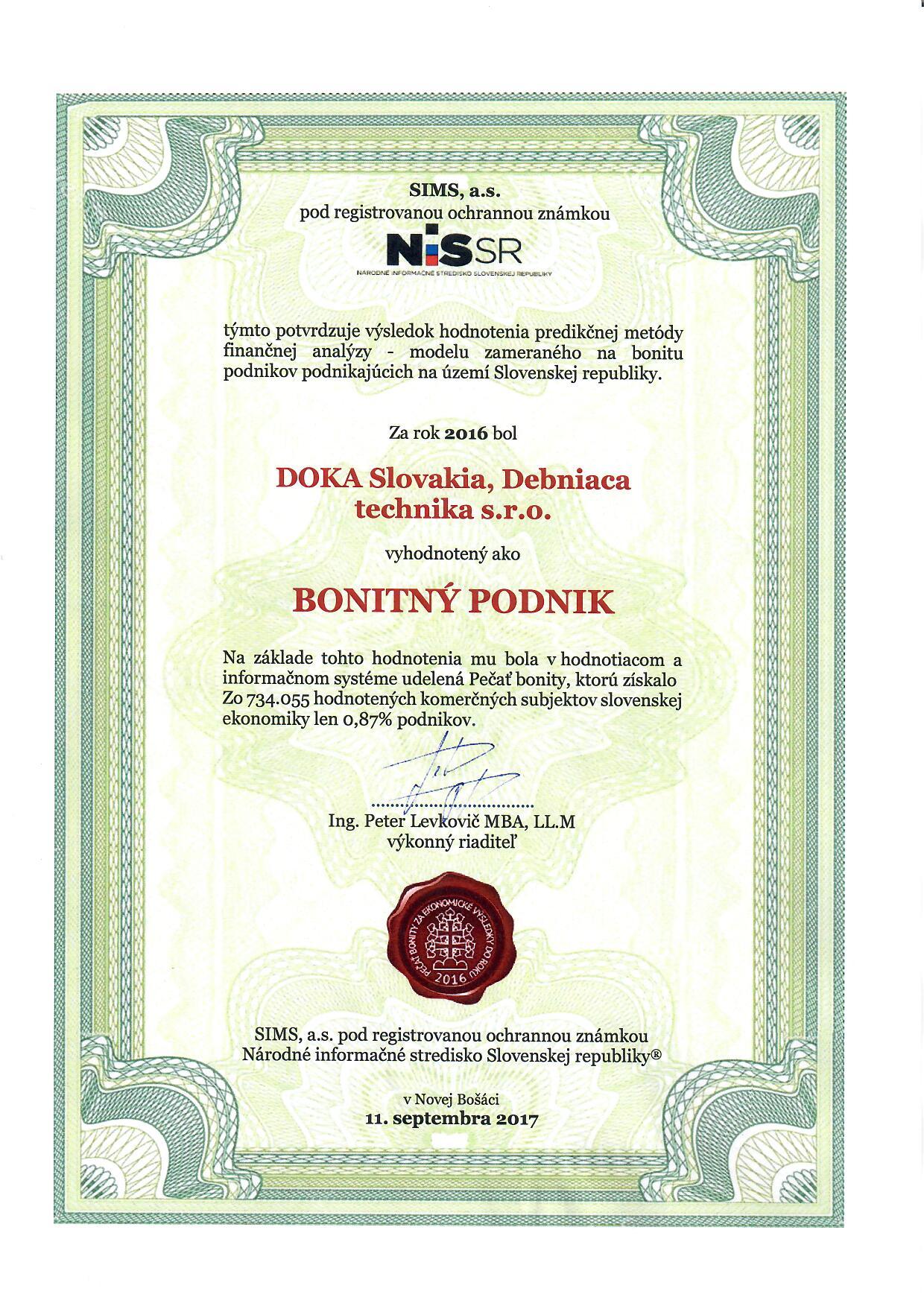 DOKA Slovakia, Debniaca technika s.r.o. – „PEČAŤ BONITY“
