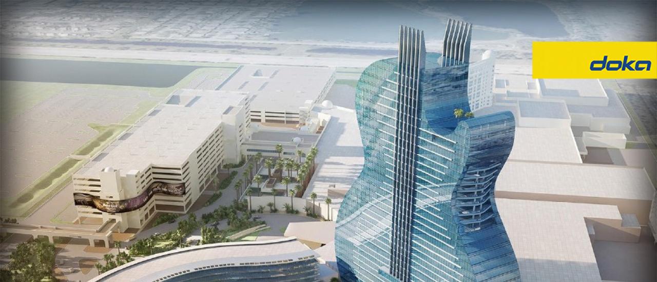 Dünyanın ilk gitar şeklindeki binası olacak Hard Rock Hotel & Casino, Doka tarafından sağlanan kalıp sistemleri ile benzersiz şeklini alıyor. Florida’da yer alan ve 2019’da tamamlanması planlanan kompleksin içinde, 125 metre yüksekliğinde ve sırt sırta konmuş iki gitar gibi görünen otelin yanı sıra 6500 kişilik bir hard-rock konser salonu, TV stüdyosu, yayın merkezi, sağlıklı yaşam alanı, mağazalar ve bir de Casino yer alacak.