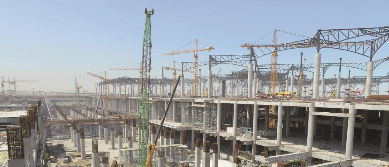Загальна будівельна площа цього мега-проекту складає 2 млн. м2,тут одночасно діє до 80 кранів. Дві третини опалубного обладнання для першої частини проекту постачали фахівці з опалубки Doka. Опалубні рішення базувалися на використанні рамної щитової опалубки Framax Xlife та Frami Xlife, балково-ригельної Top 50, опалубки на основі балок H20 eco та H20 top, що спирається на опорні риштування. Системи Doka було застосовано у всіх основних частинах проекту, включаючи злітно-посадкові смуги, термінал, багаторівневі паркінги, готелі, очисні споруди.