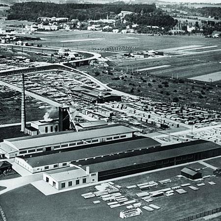 Все насправді почалося із дерев’яних ящиків, які виготовляло підприємство Хопфервейзера. Точніше із дошок, з яких вони збиралися. У 1954 році неподалік від Амштеттен в місті Іббс-Персенбойг розпочалося будівництво великої електростанції на Дунаї, яке мало потребу у великій кількості таких дошок для опалубки. Теслярі на будмайданчику з’єдували їх разом, щоб отримати міцні плити великого формату. Але на місці це було незручно, витрачалося багато часу, і фірма Хопфервейзера змогла виграти контракт на виготовлення опалубних плит. Так народилася багатошарова плита для опалубки. Спочатку шари з’єднувалися за допомогою механічного кріплення, але потім почали використовувати склеювання. У свій час це буда революція у будівельній галузі.