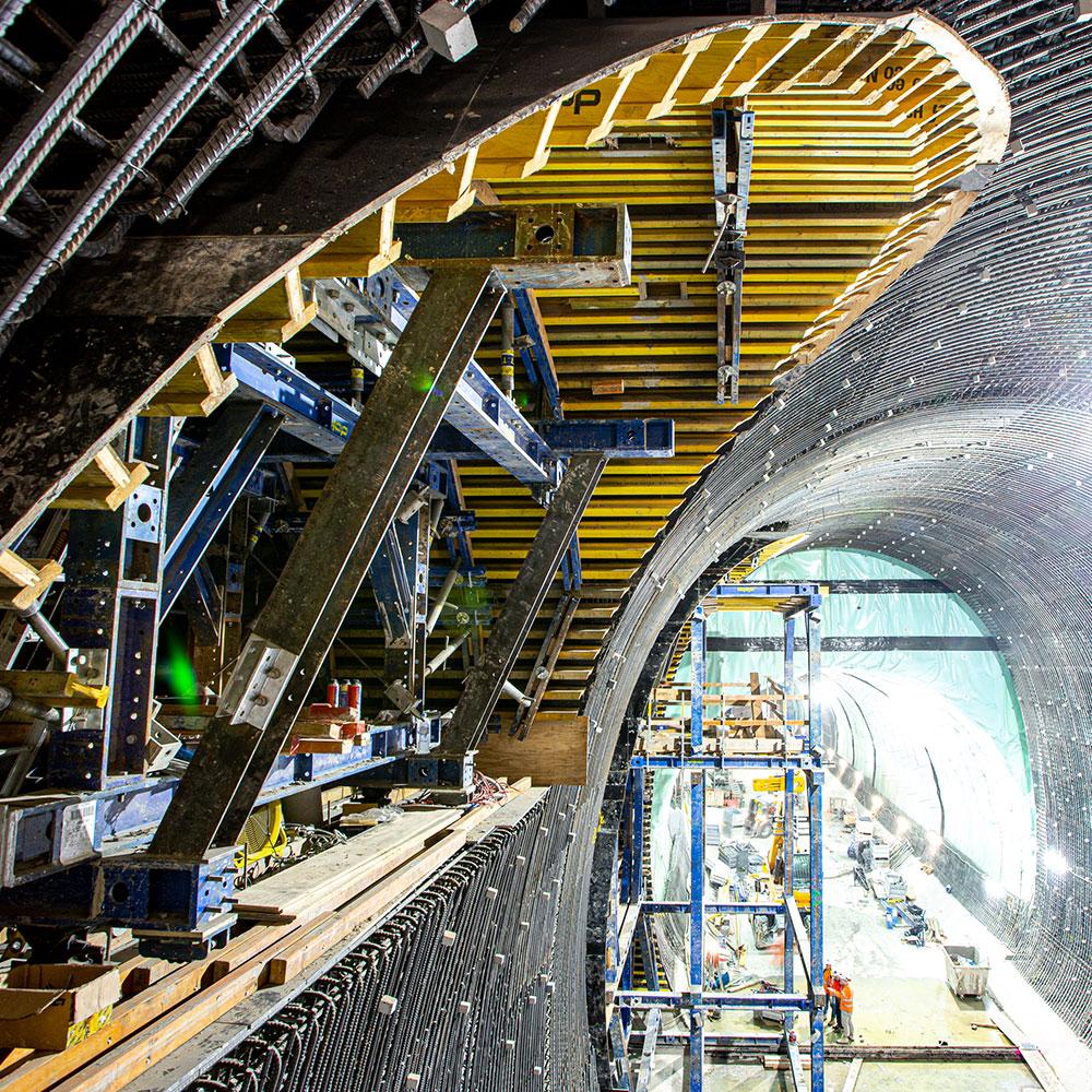 Даний проект переконливо демонструє можливості важкої опорної системи Doka SL-1. Ця модульна система забезпечує комплексні опалубні рішення у тунелях із різноманітними поперечними перетинами, формами та навантаженнями. На сьогодні це найбільше залучення Doka до потужних тунельних робіт у галузі громадського транспорту.