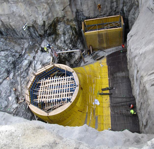 A run-of-river hydroelectric power station at Embretsfoss in southeastern Norway was renovated to secure long-term electricity supplies. Among the components constructed with Doka were the intake structure and parts of the massive concrete dam. thehe intake structure is elliptically shaped and tapers from 17 m to approx. 4.50 m.